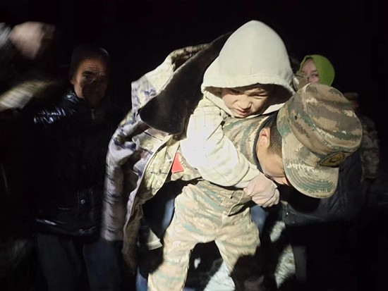 12月19日,武警甘肃总队临夏支队官兵在甘肃省临夏回族自治州积石山县刘集乡阳屲村展开救援。侯崇慧/摄(新华社发)