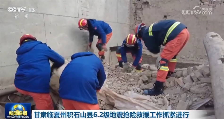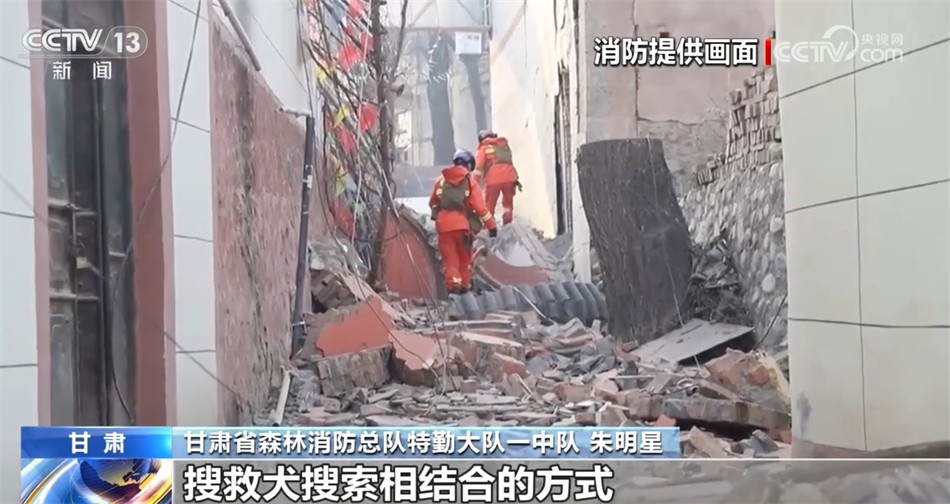 甘肃省森林消防总队特勤大队一中队 朱明星:我目前位于积石山县大河家镇,我们采取人工搜索和搜救犬搜索相结合的方式,对灾区坍塌结构(被困人员)进行搜索。 在积石山县大河家镇,由于现场房屋多为自建房,墙体有明显裂缝,部分墙体垮塌。其间,消防救援人员采取人工和犬搜索相结合的方式,开展人员搜救、安全隐患排查。