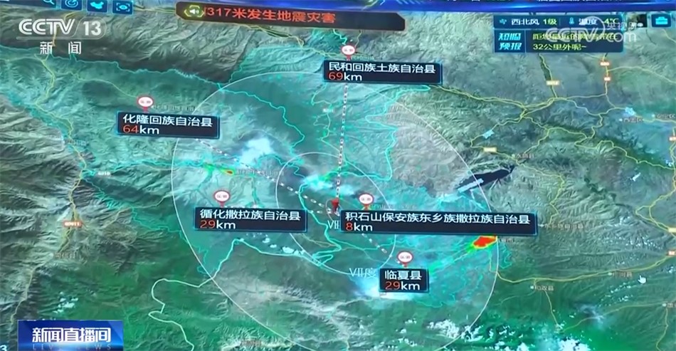 受地震影响,青海省海东民和县中川乡草滩村、金田村房屋受损,有人员被困,国家消防救援局青海机动队伍200名救援人员于19日3时到达灾区后,迅速进行勘察,加紧进行人员搜救。由于通往受灾区域的通道被泥浆堵塞、难以通行,救援人员铺设板材搭建营救通道、清理淤泥,分成多个小组加紧搜救被困人员。 国家应急指挥总部全力调度地震救援 有关救援部署的更多情况,再来看总台央视记者稍早前发自国家应急指挥总部的报道。 总台央视记者 宋琎:我现在就在国家应急指挥总部,我们先看一下整体情况,从我身后的这张应急指挥一张图,我们可以直观地看到,此次地震的震中距离甘肃积石山县县城8公里、临夏县26公里、青海循化县29公里、化隆县64公里、民和县69公里,这也是此次受灾的主要区域。画面上也通过热力图标注了人员情况,红色区域就是人员密集区域。通过这样信息汇总的一套系统,能够及时为整个救援的决策工作提供有力的支撑。