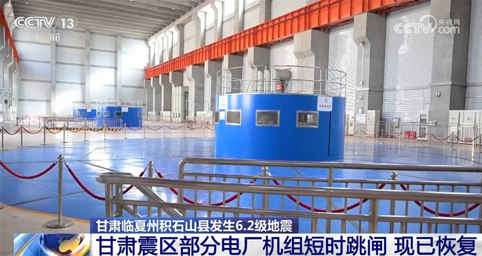 【关键词六:电力恢复】 甘肃震区部分电厂机组短时跳闸 现已恢复 今天凌晨,地震导致部分电厂机组短时跳闸,在确认设备安全后,目前已全部恢复并网。 受地震影响,距离震中约16公里处的国家电投黄河公司积石峡水电站三台机组跳闸,电站立即启动地震灾害专项应急响应,经全面排查,大坝及水工建筑物无异常。经驻站人员积极抢修,今天凌晨4时,全部机组恢复并网,目前水库水位1855.88米。