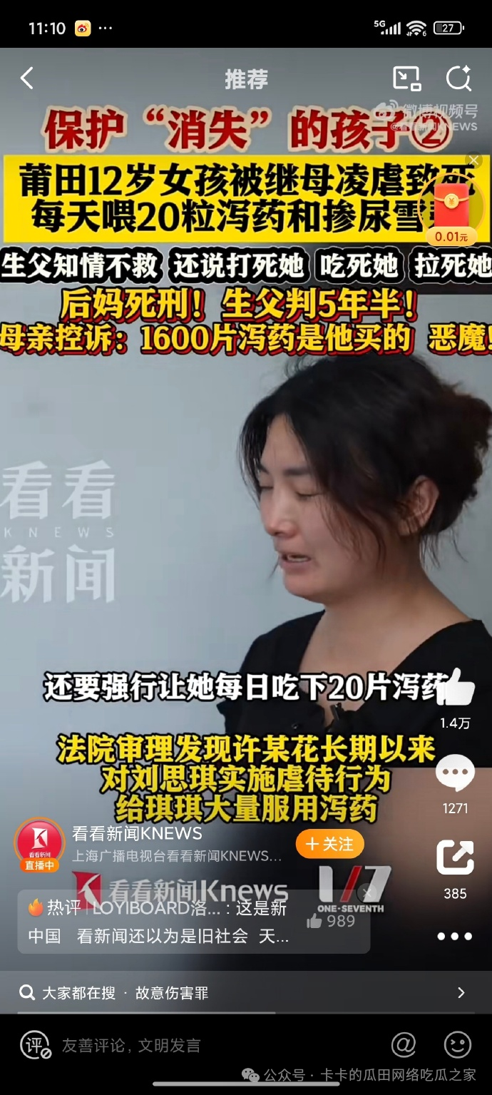面是福建莆田12岁受害者女孩刘思琪妈妈的自述: