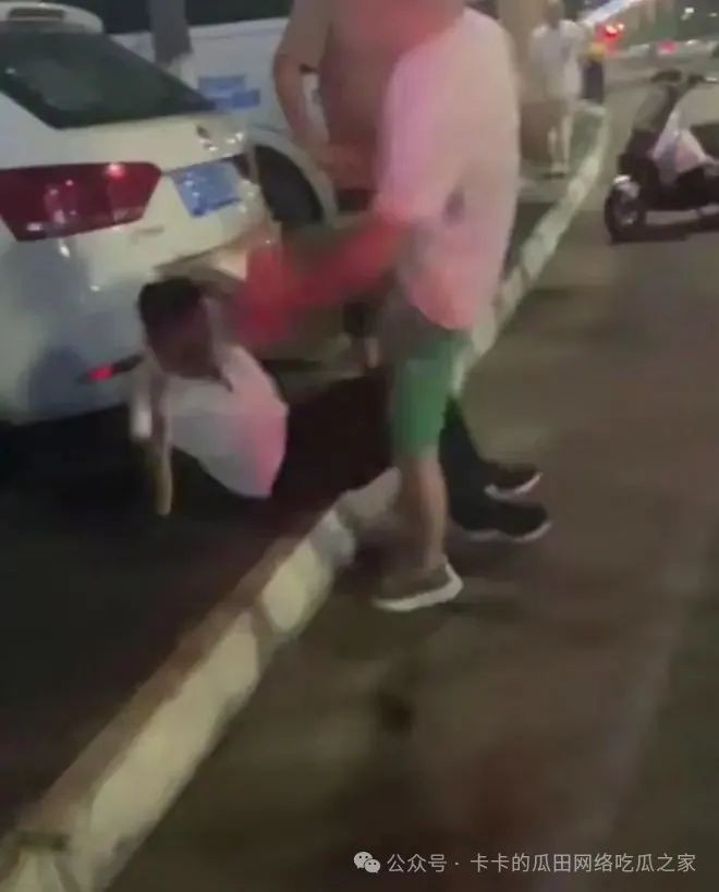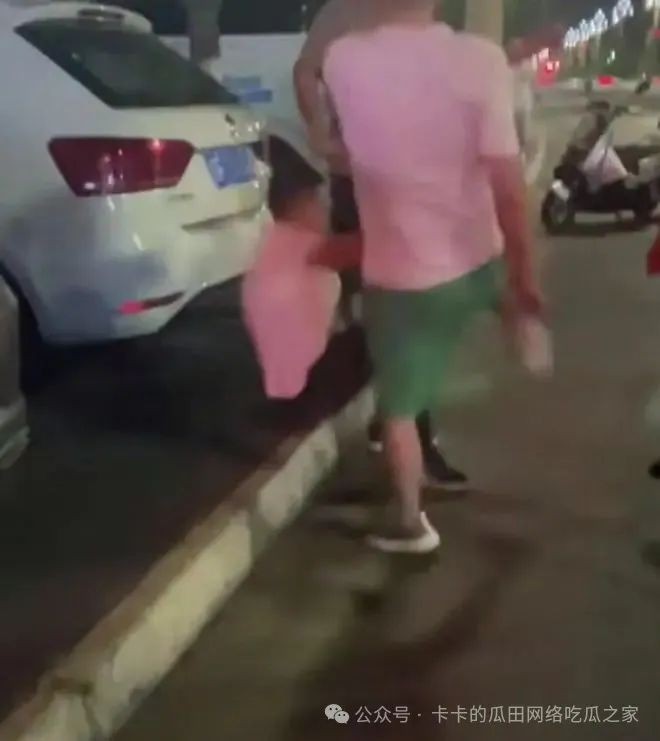 视频里清清楚楚记录了整个过程:小女孩爸爸,穿着粉色T恤和绿色短裤,把那男的按在马路牙子上就开骂,接着一脚狠狠踹向他的头部,直接把人踹倒在地。