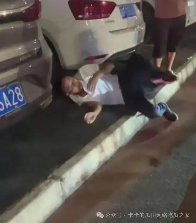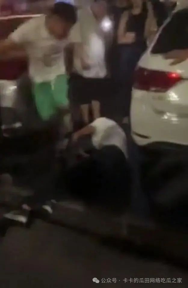 现场的人把这场"私刑"全程拍下来传到了网上,视频中能看得一清二楚,这男的穿着白色Polo衫和深色裤子,被打后缩在路边,跟条狗似的。