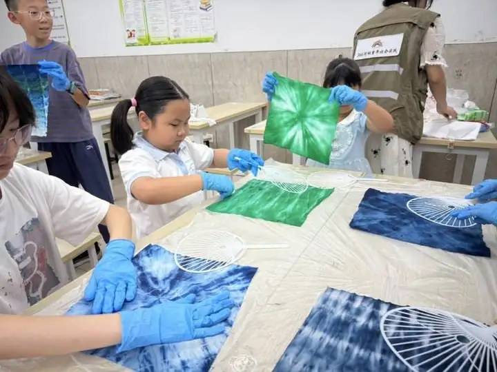 古法扎染,又称「扎缬」「绞缬」,是藏在时光里的中国非遗技艺。 不用复杂机器,一布一线一绳,全凭双手,就能染出独一无二的纹理,每一件都是世间仅此一件的艺术品。 邂逅扎染・三六六社会实践带领青少年开启非遗小课堂 初遇扎染,小朋友们总会充满好奇: 怎么扎?用什么染?能做出多少种图案? 在老师的带领下,一起解锁古老技艺的秘密。