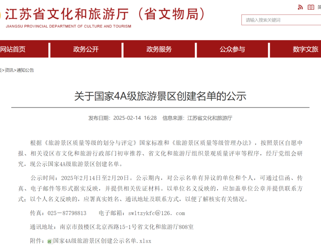 日前,江苏省文化和旅游厅官网发布《关于国家4A级旅游景区创建名单的公示》苏州又有2 ...